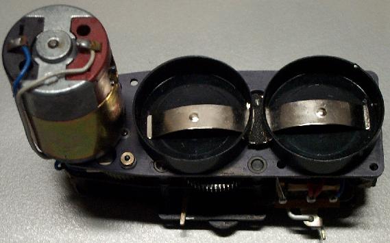 You are looking at the 2 connector springs that connect to the batteries. Not shown is the fuse holder & fuse. It tends to fall out of the motor unit, and you will most likely forget to install it during re-assembly at least once (I did..).