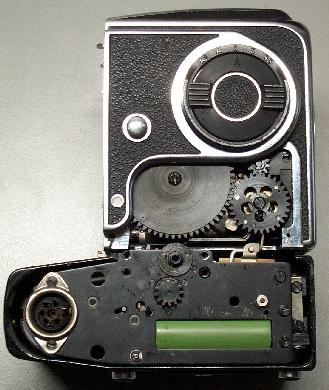 Getting it all together again is an entertaining job. Especially as you cannot mount the motor unit on the camera for testing without the body shell in place. The shell also acts as a spacer. I ended up creating a spacer from a piece of scrap aluminium plate so that I could observe all the gears. Not much to see with the body shell in place for obvious reasons..