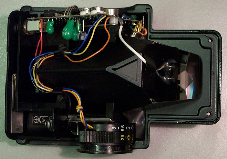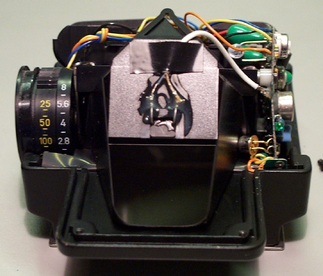 Before you start work on the camera make sure it is cocked and then remove the battery, the shutter release button and the glass fuse (it will fall out anyway at some point).