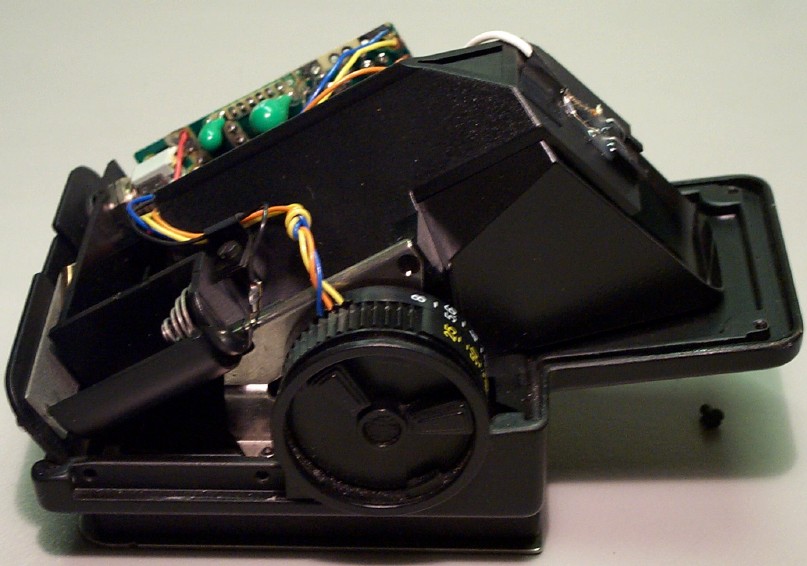 The right side of the camera is where the interesting parts are. There is a really intricate set of gears, levers, springs etc that work in close concert to make your camera cycle through its exposure cycle. Just marvel at this mechanical masterpiece, don't fool around with it.